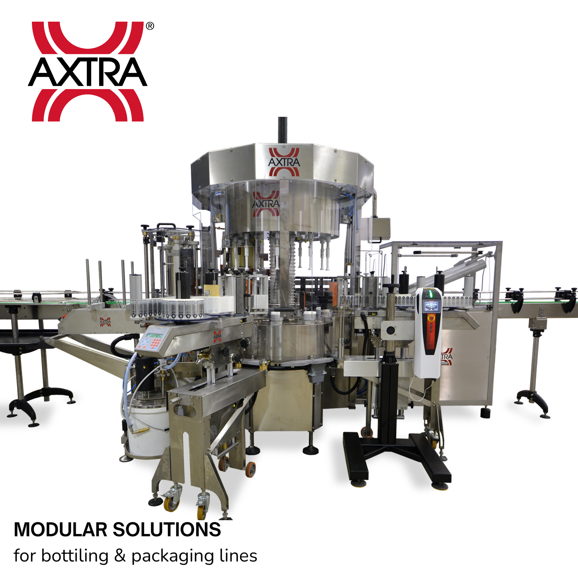 AXTRA has developed a complete range of modular labeling machines, the first manufacturer worldwide to design an entire line with this philosophy.
