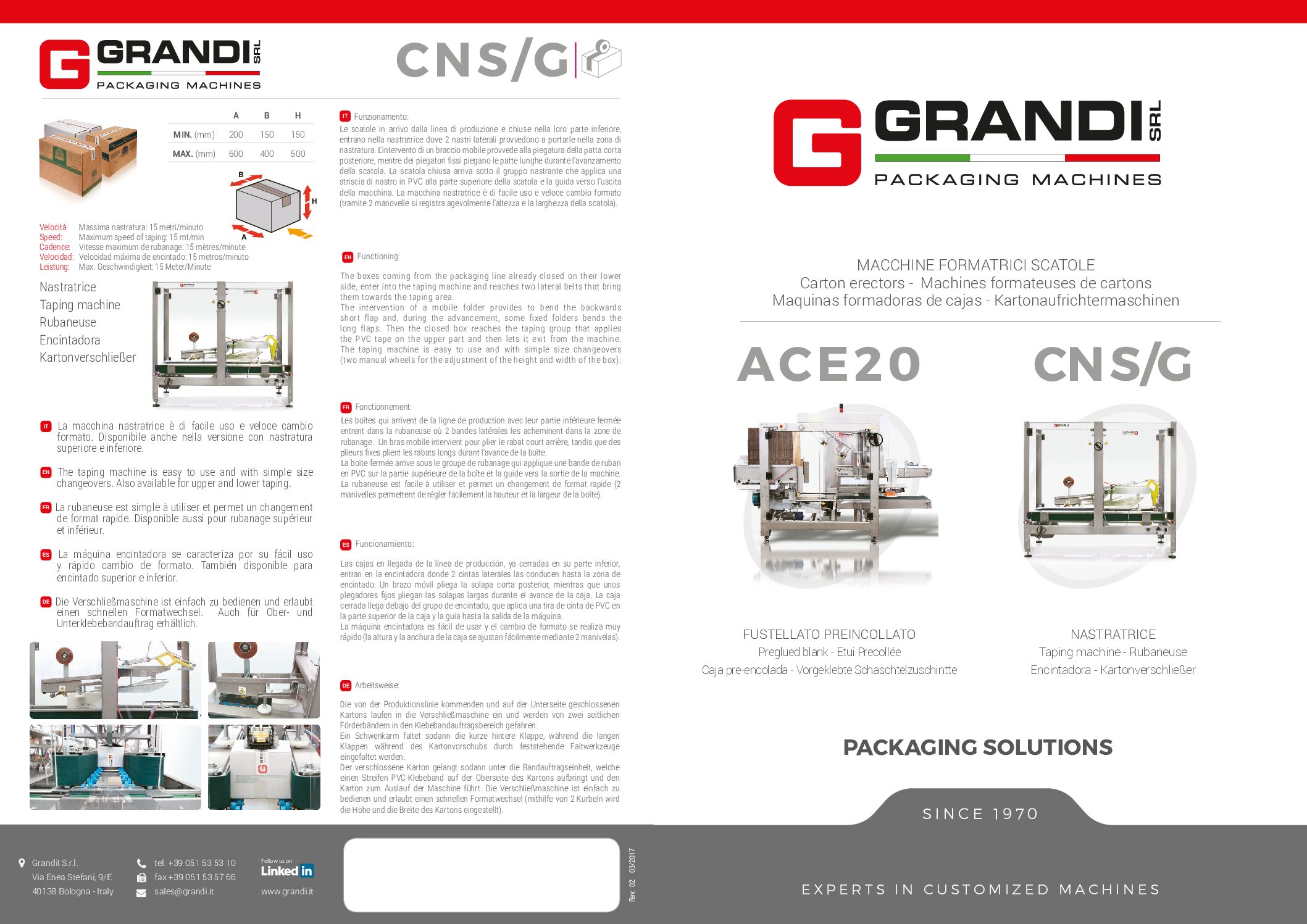 In 1970 Grandi Srl was founded by Renato Grandi with the intention of making innovative machines that would meet the needs of customers, inventing solutions that would later be used for other applications.